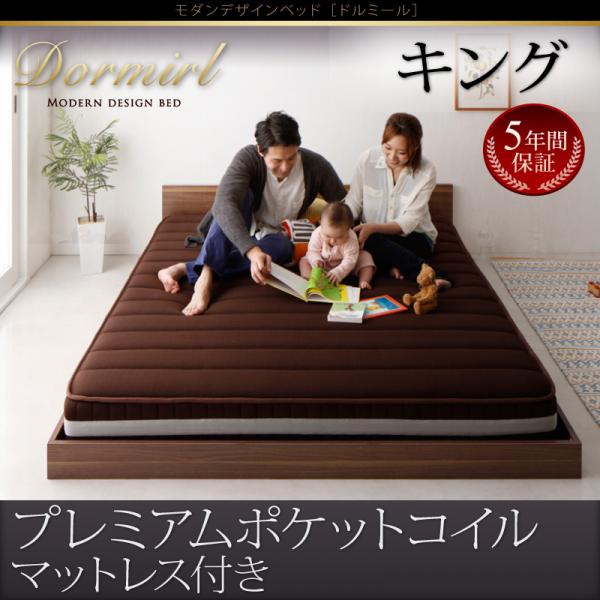 モダンデザインベッド【Dormirl】ドルミール プレミアムポケットコイルマットレス付き キング